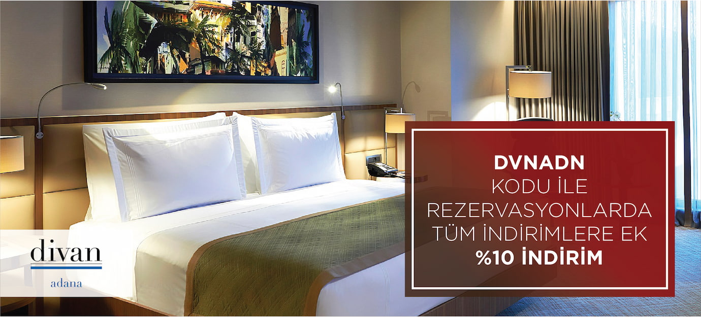 Divan Adana zevkle döşenmiş otel odaları ve Batı ile Doğu’nun tüm olumlu özelliklerini taşıyan sıcak ve özenli hizmet anlayışı ve yarım asrı aşkın mirası ile İstanbul otelleri içinde en özel otellerden biri olma özelliğini gösteriyor.